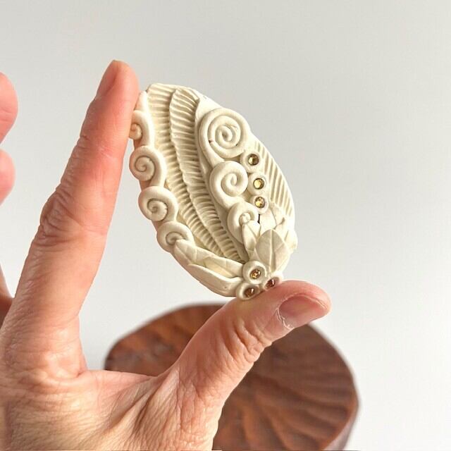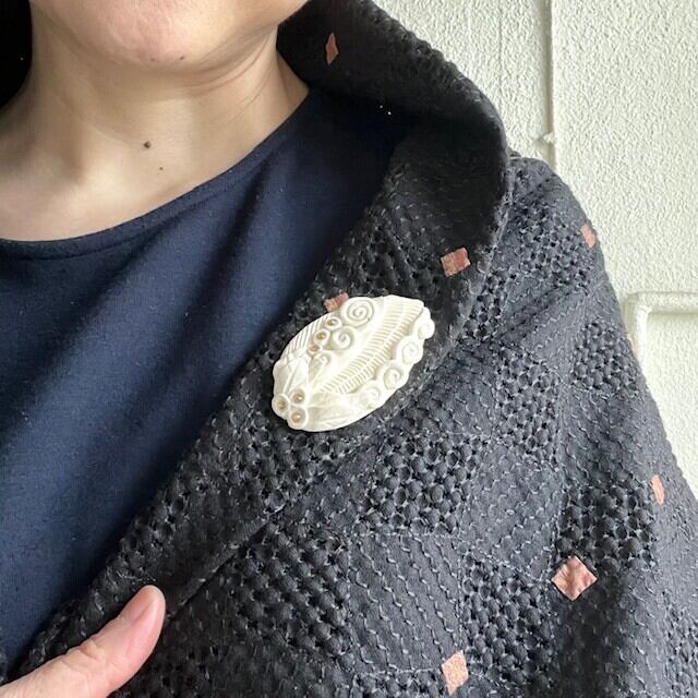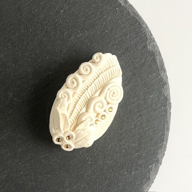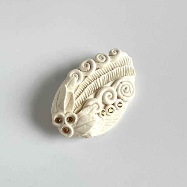 陶でできた小さなアートブローチです。