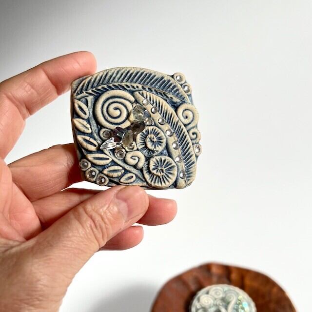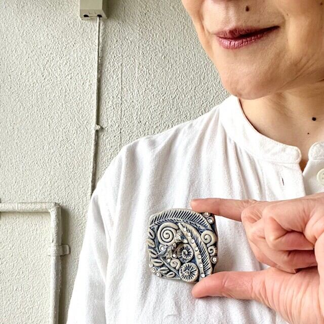 小さな陶のブローチ。