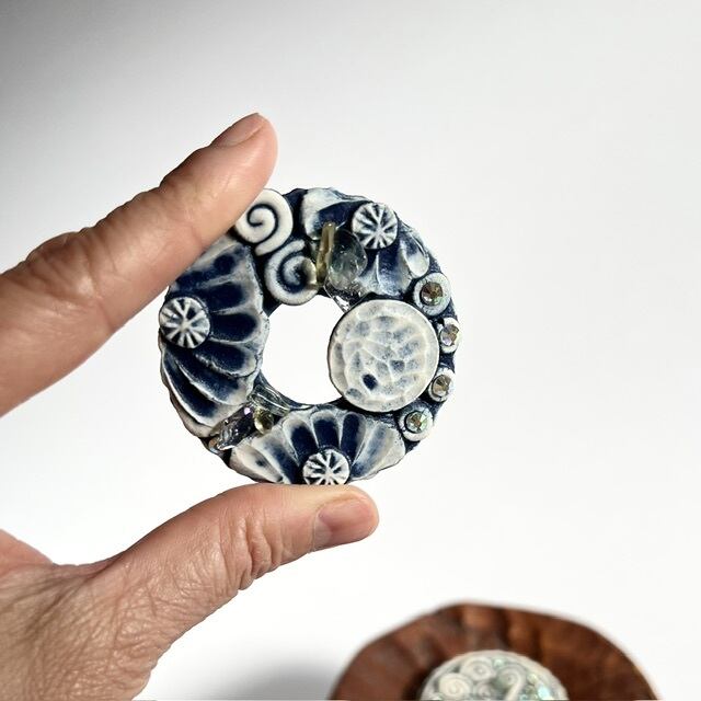 小さな陶のブローチ。