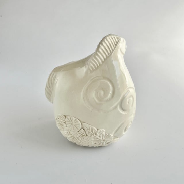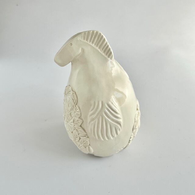 花小紋と渦巻きのレリーフを施した愛らしい午の姿は
