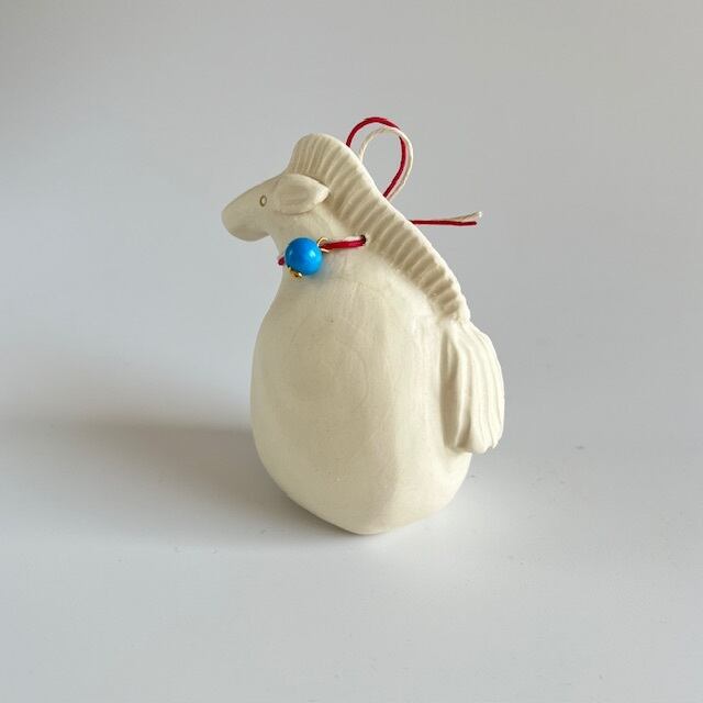 天然石(ターコイズ)を首元に飾ったその姿は、