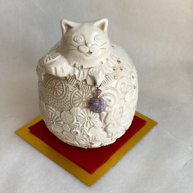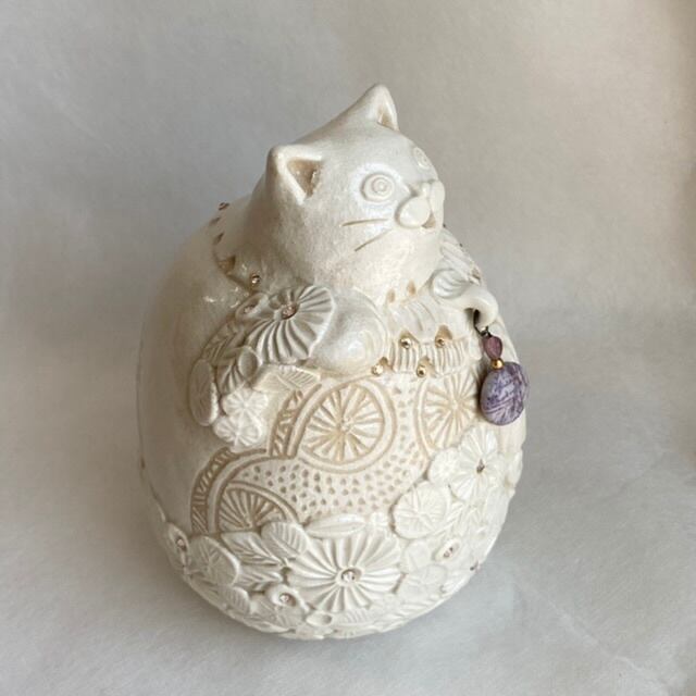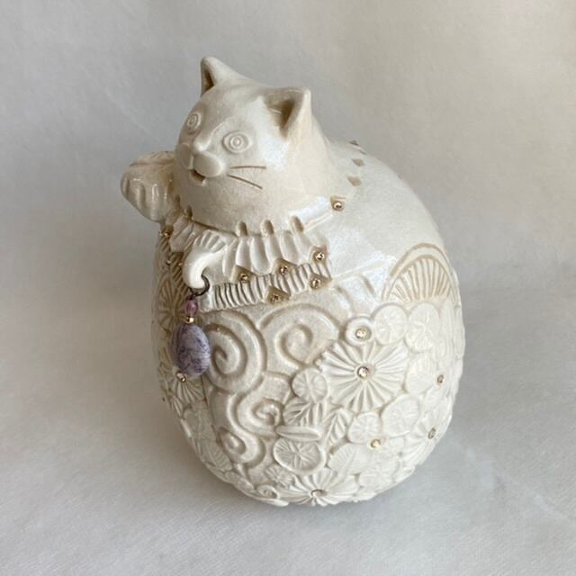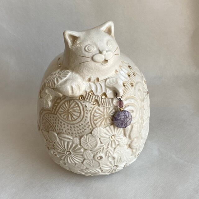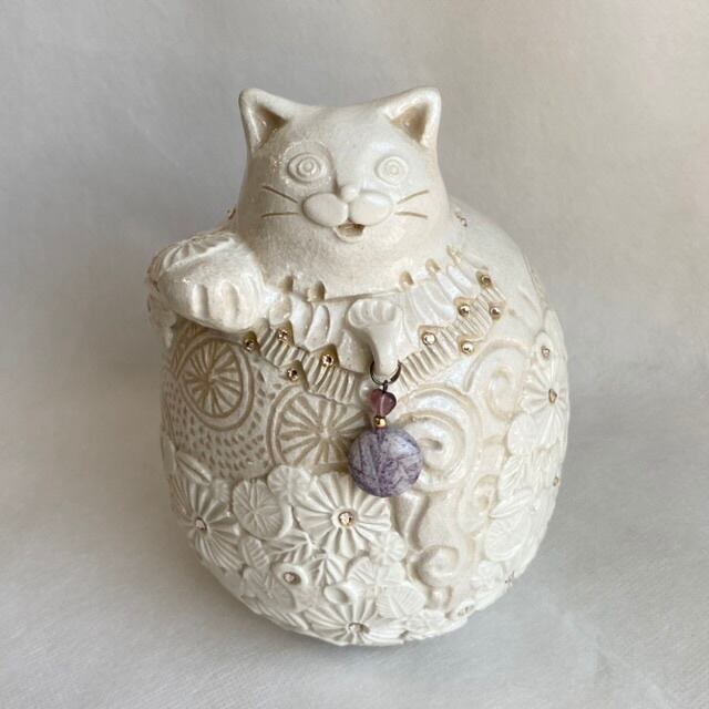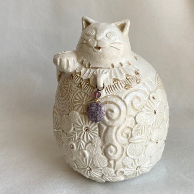 花小紋・輝き福福招き猫 /(チャロアイト&スワロフスキー)
